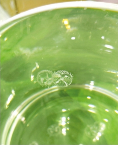 数日前,空港湿地花田技术员彭贤在湖泊4米深水区潜水查看沉水植物生长情况时,无意中发现了这些桃花水母。他回忆,当时他看到金鱼藻和苦草之间有伞状浮游生物闪现。这种伞状生物通身透明,在水中一开一合,缓慢移动,身体周围还有不少长短不一的小触须。