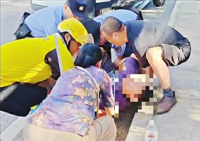 公交站台上有个20岁左右的年轻女孩,见到郑海燕停了车,开了口:“怎么办?我刚下车,就看见他倒在这里,也不知道怎么倒的,是不是中暑了?”