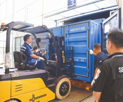武汉晚报讯(记者陈智 通讯员杜婷婷)卸货、安检、打板、上车,一气呵成……8月7日9:40,在位于东湖综保区的武汉光谷航空超级物流中心(以下简称光谷货站)内,7.3吨约15万美元的跨境电商货物正在走上飞机前的最后流程。当日,光谷货站正式揭牌,标志着全国首家网状驳运型航空前置货站正式投运。