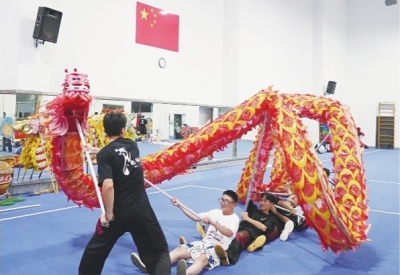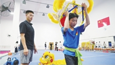 这周六,两支龙狮队将在夏令营联欢晚会上合演《龙腾狮跃舞江畔》,不仅将用龙摆出“中”“国”字样,狮子还会“吐”出一副对联:“长江雅江同朝夕,鄂藏情深共交融。”
