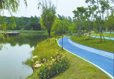 公园的路是彩色的,透水沥青材质不易积水,跑友能放心锻炼,住在附近的居民也可随时散步休闲。此外两条特色路也别具一格,一条蜿蜒上山,两侧植有红梅,另一条紧邻三环,种有乌桕。
