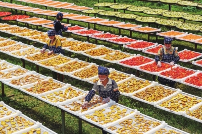 8月26日,江西省宜春市铜鼓县温泉镇禄田村村民在院落“晒秋”。