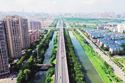 如今,项目建成运行,黄孝河、机场河明渠水质达到Ⅳ类,成了市民散步休闲的好去处。沿河走来,河水静静流淌,岸线伸向远方,平坦的游步道与河岸相伴……黄孝河箱涵与明渠衔接处的铁路桥地下净化水厂,达标排放的尾水作为生态补水,源源不断为黄孝河注入活力。