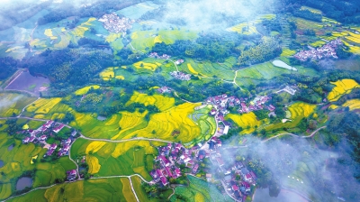 8月19日在兴隆镇三山村拍摄的“云上梯田”(无人机照片)。安徽省宣城市旌德县兴隆镇梯田,有着万亩“云上梯田”之称。立秋过后,连片种植的万亩水稻陆续成熟,丰收在望。