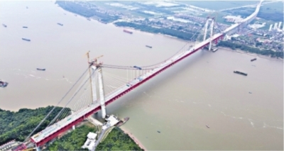 据新华社电 8月27日,随着大桥两侧节段钢梁焊接完成,主跨近千米的G3铜陵长江公铁大桥主桥顺利合龙,标志着我国首座双层斜拉—悬索协作体系大桥主体完工。