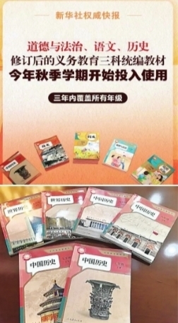 根据计划,义务教育三科统编教材将在三年内覆盖所有年级。今年秋季学期,小学一年级和初中一年级使用;2025年,小学一、二、三年级和初中一、二年级使用;2026年,义务教育阶段所有年级全部完成替换。