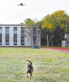 在警犬训练中多以抛球引导。刚开始,无人机驯犬采取了传统的抛球方式,将球挂在无人机上,通过抛球来引导警犬执行指令。一次,在引导警犬返回时,驯犬员习惯性地将手中的球抛给了警犬,此后,这只警犬就养成了边跟着无人机跑边回头看驯犬员是否抛球的习惯,无奈只好让它退出。