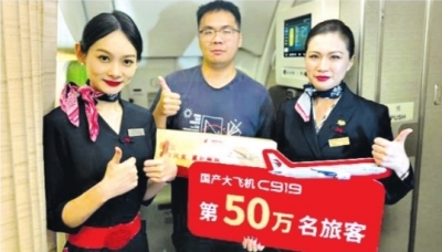 国产大飞机C919迎来第50万名旅客。