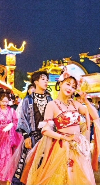 直至晚上8时,木兰奇妙广场已座无虚席。一场庄重而神圣的祭月大典缓缓拉开序幕,坐在月亮上的“嫦娥仙子”轻撒花瓣,与观众遥相呼应,营造出一种超脱尘世的梦幻之感。紧接着,《木兰传奇》的震撼上演、非遗打铁花的璀璨夺目、火壶表演的动人心魄以及国风电音节的激情四射,将现场的氛围推向了一个又一个高潮。当绚烂的烟花秀在夜空中绽放,五光十色的光芒与浪漫的音乐交织在一起,整个木兰不夜城仿佛被施加了魔法。游客李曜均感慨道:“满眼的璀璨星河,木兰不夜城的夜,美得让人心醉。”