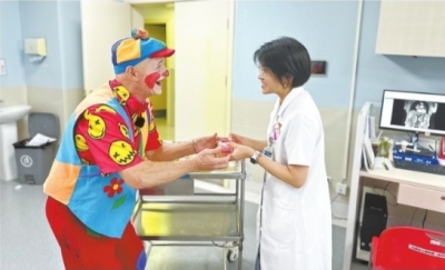 放化疗过程中,维克多发现病房里有许多像他一样正在经历癌症折磨的患者。“抗癌是一条十分艰辛的路,我通过治疗看到了希望,更想用自己擅长的表演让更多患者有信心战胜癌症。”中秋节前一天,维克多特意带着道具回到病房,戴上夸张的红鼻子,穿上花哨的服装,变身成马戏演员。