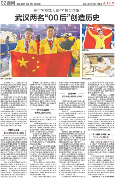 武汉两名“00后”在世界技能大赛中摘金夺银