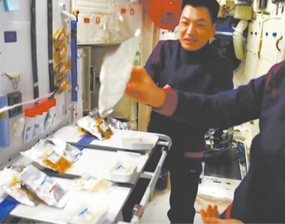 航天员的中秋大餐格外丰盛,土豆牛肉、红烩猪排、奶香鸡米、马蹄糯米糕、什锦蔬菜……地面支持团队提前根据每位航天员的口味喜好准备了个性化的中秋美食礼包。