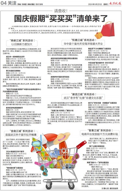 以旧换新补贴力度叠加、首届武汉热干面节开幕、电商平台超千万元消费补贴……今年的国庆长假,武汉人即将开启“买买买”模式。