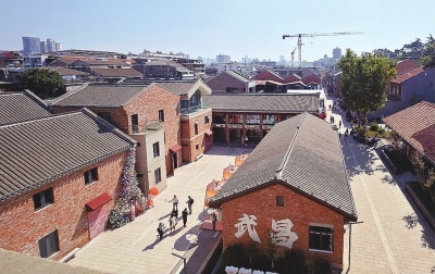 武汉晚报讯(记者秦璟 通讯员吴迪)24日,武昌古城·斗级营正式开街。站在附近的制高点向街面看去,青瓦红墙的斜顶连廊下,汉派伴手礼、咖啡店、唱片店等新店鲜艳亮相。汉派古味建筑里开出一众新业态,武昌古城迎来一个全新的文旅消费地标。