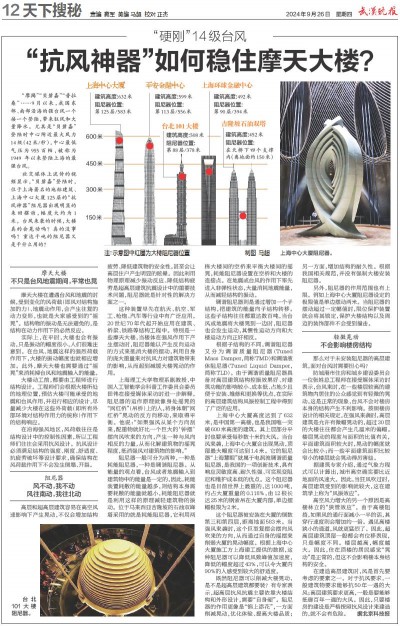 实际上,在平时,大楼也会有振动,只是振动的幅度很小,人们很难注意到。在台风、地震这样的强烈荷载作用下,大楼的振动幅度也就相应增加。此外,摩天大楼也需要通过“摇晃”来消耗掉台风和地震输入的能量。