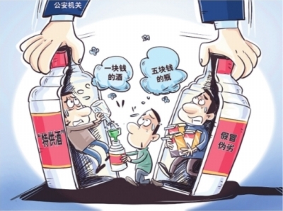 ——以次充好。如江苏省扬州市公安机关新近破获的“4.09”假冒注册商标案,现场查获假冒茅台系列白酒23556瓶。犯罪嫌疑人称,他使用的基酒都是10余元的低端酒,以进口高粱为原料,使用碎沙工艺酿造,1桶110斤仅需1300元。