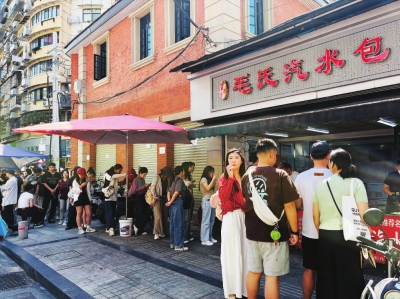 山海关路也见证了游客觅食的热情。10月2日上午10时,记者看见,汪记鲜鱼糊汤粉、双黄牛肉面、严氏烧卖、桂萍牛杂、邓记糯米鸡、李记鸡冠饺、燕子煨汤、金三角煨汤、毛氏汽水包、徐记糯米包油条等店铺,成了游客必打卡的美食店。每家店铺前,都有游客排长队等待美食出锅。其中,李记鸡冠饺、毛氏汽水包、双黄牛肉面店面前,人气最旺,排队达三四百米。