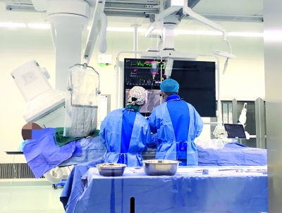 江夏区中医医院心系病、消渴病科(心血管内科)主任陈秀萍及相关医护人员迅速到位,以最快速度完成术前谈话后,将吴爷爷直接送入导管室。经冠状动脉造影检查,发现患者粗大前降支口部闭塞伴血栓影,需立即进行急诊经皮冠状动脉介入治疗(急诊PCI术)。