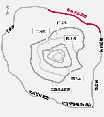 武汉六环线黄陂至新洲段项目,起于孝感市孝南区祠堂湾与武汉市黄陂区李集街道肖家湾的界河,止于新洲区邾城西侧的刘集,与新港高速双柳长江大桥及接线工程对接。路线全长66.12公里,按照双向6车道高速公路标准建设,总投资126.15亿元,设计速度为120公里/小时,预计2027年底建成通车。