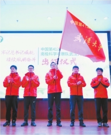 武汉晚报讯(记者汪洋 通讯员吴江龙 武柳青)26日上午,极地环境监测与公共治理国际学术研讨会在武汉大学开幕,现场同步举行第41次中国南极考察队武汉大学队员出征仪式。5位即将出征的考察队员从武汉大学党委副书记楚龙强手中接过队旗,他们分别是班伟副研究员、刘明亮博士、梅登奎博士以及科研助理欧阳润川、朱子渊。5位队员都是第一次参加极地科考。