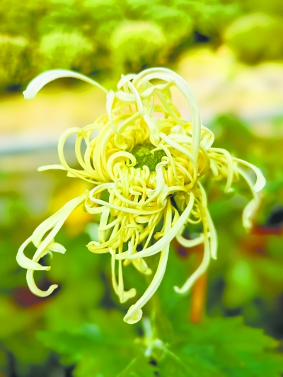 “国庆菊”顾名思义,主要在国庆节期间绽放。这批“国庆菊”是为今年的金秋菊展“量身定制”的,故对花期也进行了调控,使它们延迟一个月开花。