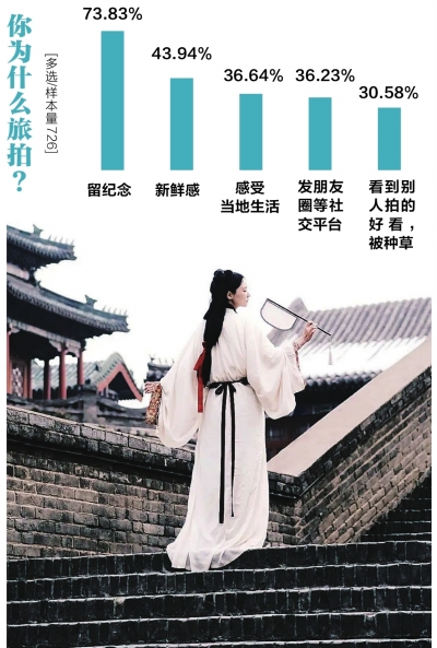 对旅拍的包容度高,或许是因为旅拍的意义。调查显示,超七成人旅拍是为了留纪念,近半数人是追求新鲜感,近四成人是为了感受当地生活体验当地文化。