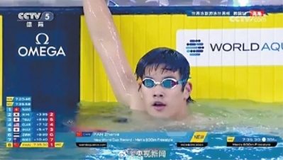 世界泳联官网文章中提到“中国队在仁川站迎来‘大日子’,大批中国粉丝旅行到仁川在泳池边助威”;法国《队报》称“潘展乐是男子100米自由泳专家,很少出现在中长距离比赛中,这是他前所未有的表现”……然而依然有少数欧美记者和网友诋毁潘展乐,质疑中国游泳。