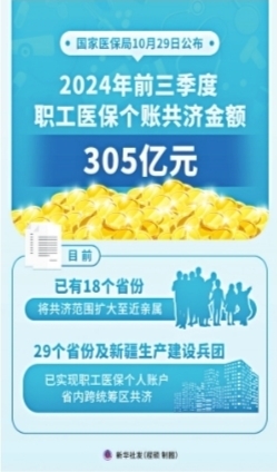 2024年前三季度职工医保个账共济金额305亿元