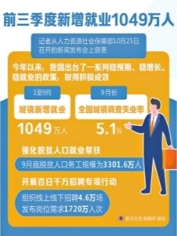 前三季度新增就业1049万人