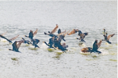 家住光谷的摄影爱好者“飞鹰”就是观鸟者中的一位。为了能拍到鸬鹚更动态的姿态,“飞鹰”早上6时便从家中出发,在东湖游船楚城码头乘船前往东湖落雁景区芦洲古渡码头,游船以合适的距离缓缓驶过走人棋鸟岛,他赶紧屏住呼吸,拿起相机拍摄下眼前的画面。他说:“在游船上,我第一次在水上观察它们的栖息地,看到它们成群展翅飞翔的样子,太震撼了!”