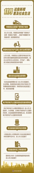 11月这些新规惠及社会生活