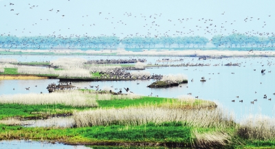府河湿地数万只冬候鸟不远万里飞到武汉过冬。