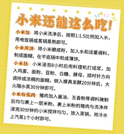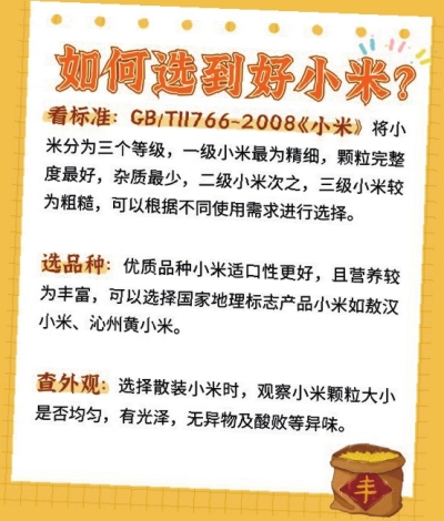 秋季进补好时节,一碗温热甜糯小米粥落肚,胃和心都得到了满足。如何才能选到好小米?小米的营养“搭子”有哪些?小米粥如何熬才更香?喝小米粥养胃还是伤胃?除了熬粥外,小米还能怎么吃?
