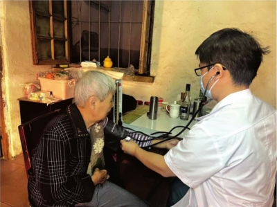 5位医护人员分工明确,无缝衔接,整个体检过程仅花费30分钟。随后,他们又前往82岁张爷爷家,为他和老伴进行体检。“像我们这样行动不便的高龄老人,出门体检很困难,他们不辞辛苦,把体检设备从社卫中心搬到我的床边来,真的很感谢。”张爷爷对“健康快递员”赞不绝口。