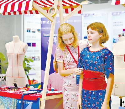 在任雨霏的作品展台上,记者还发现了许多东方元素。比如一块精美的缎子上印着黄鹤楼,一条柔软的丝巾上点缀着梅花。任雨霏说,她喜欢在设计中把东西方文化进行融合,传递爱、美好与和平。