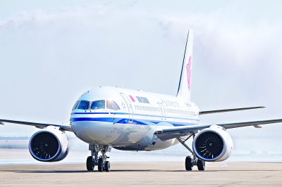 据新华社电 7日10时05分许,国航CA088航班平稳降落在澳门国际机场,执行此次调机任务的国航B-919Y号国产大飞机缓缓滑行通过象征民航界最高礼遇的“水门”(上图)。这是国产大飞机C919首次到访澳门,也是B-919Y交付以来的首飞。国产大飞机C919的亮相在澳门引起大飞机热潮。飞机通过“水门”时,现场拍照的快门声此起彼伏。有澳门记者表示,有机会一睹国产大飞机真容十分兴奋。