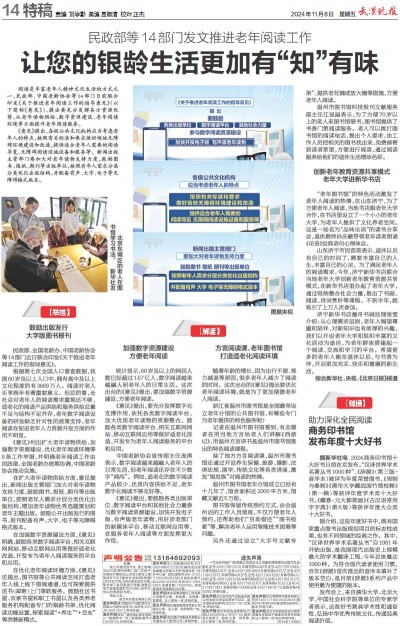 民政部等14部门发文推进老年阅读工作~~~