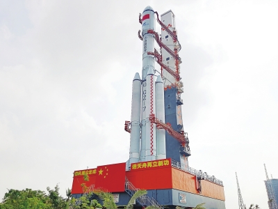 11月13日,天舟八号货运飞船与长征七号遥九运载火箭组合体垂直转运中。
