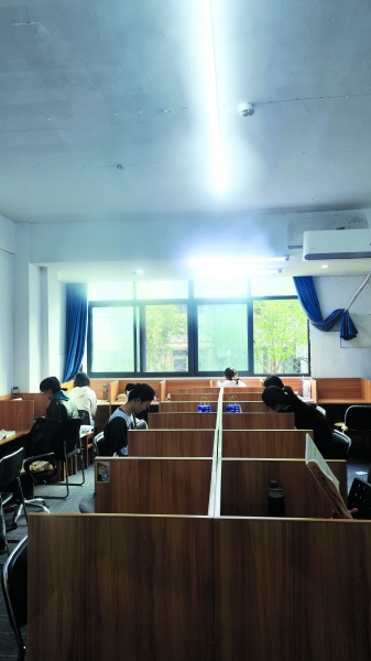 王老师说,设立督学室是学生提出的需求,“有学生自律性差,需要靠旁人监督”。王老师介绍,有学生提出背书不方便,该中心便拿出2间自习室作为大声朗读室。有女生提出,应设立女生专属自习室,该中心也马上安排。