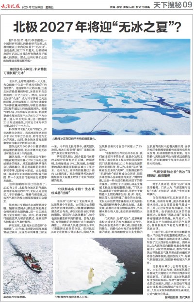 “北极熊的生存状态并不乐观,我们在北极科考的时候,也很少发现北极熊。”南京信息工程大学海洋科学学院门武教授曾在2010年参加我国第四次北极科考,他认为,北极“无冰”意味着生态系统“洗牌”,北极熊这样的“明星物种”更容易被公众同情,但很多体型微小生命也值得关注。“例如冰藻,这是一种生活在极地冰层下的特有藻类。尽管它们不起眼,却是支撑起北极生态链的重要力量。”门武介绍,藻类处于食物链底层,供给处于食物链中上层的海洋生物(鱼、虾、海豹、鲸类等),进而构建了复杂的生态链。北极无冰显然对冰藻有极大的负面影响,进而影响整个北极生态链。北极变暖,各种冷水种生物将会消失,外来暖水种生物入侵,生态系统将面临大变局。
