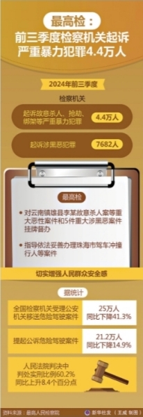 最高检:前三季度检察机关起诉严重暴力犯罪4.4万人