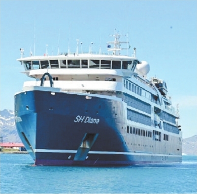 记者了解到,游客们乘坐的“戴安娜”号是希腊天鹅邮轮公司旗下的豪华客船,由芬兰赫尔辛基造船厂建造,该船长125米,宽23米,排水量12,255吨,巡航速度为14.5节,最多可容纳192名乘客和127名船员。其宣称为新一代极地级邮轮,船体做了特殊的抗冰设计,适用于探索地球上最令人振奋和难以接近的地区,并提供各种五星级服务。