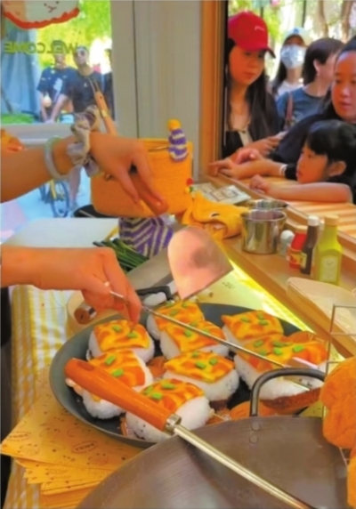售卖过程中,这样“过家家”的消费过程吸引了不少人围观,有人好奇笑道:“明明都是假的,有什么意义?”排队购买的“00后”宋妍却反问:“为什么环球影城能赚钱?为什么迪士尼能赚钱?他们创造的角色现实中不存在,但我们愿意花钱去看。成年人长大了,但也有童心,也喜欢可爱的东西。”