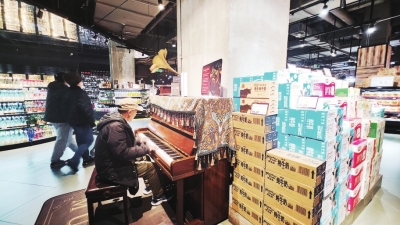 他每周末都来武汉超市弹钢琴