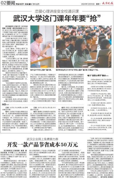 武汉大学中国传统文化研究院研二学生小许曾和同学慕名旁听了喻丰老师的通识课,她告诉记者,在宽敞的教五阶梯教室中,众多期待爱情的大学生们翘首以盼,希望能够学到实用的恋爱技巧。不过后来发现,喻丰老师的课其实是从心理学的角度分析如何谈一场健康的恋爱。