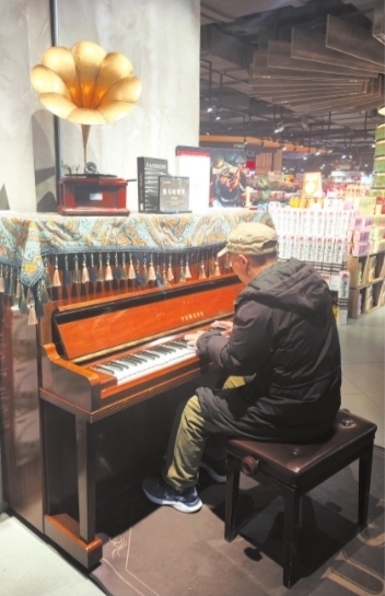 “我会弹钢琴,也爱弹钢琴,但家里没有钢琴。”过去两年,帅文卫几乎每周都会到这家超市弹上几曲。此前,他曾在单位附近的群艺馆免费学过3年的钢琴。