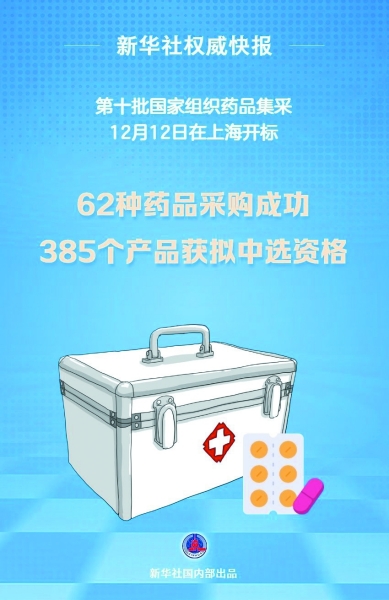 此次集采,62种药品采购成功,234家企业的385个产品获得拟中选资格。其中既有阿司匹林口服常释剂型、青霉素注射剂等常用药物,也有盐酸多柔比星脂质体注射液等特殊疾病用药,将给患者带来更多实惠。