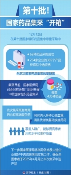 2018年以来,国家医保局已会同有关部门开展10批国家组织药品集采,累计成功采购435种药品。通过集中采购,大批过专利期的经典“老药”,全部由通过质量和疗效一致性评价的企业供应全国。