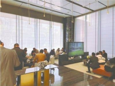 武昌热门楼盘城投·金沙樾位于徐东核心,是该区域第一个准四代住宅。在该项目销售中心现场记者看到,一楼900多平方米的销售大厅里,摆放的10多套桌椅已全部坐满人,还有部分看房人群集中在沙盘区听销售顾问详细讲解。