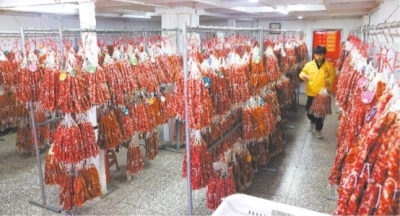 “去年这个时候,用来制作腊肠的猪后腿肉的价格接近每斤20元,而今年则降到了每斤14元,所以我多买了20斤肉。”在武汉硚口区的“网红腊肠街”集贤路,记者遇到了住汉口竹叶山的王女士。她迫不及待地向记者展示“战利品”,她说:“我每年冬至都会来这里购买腊肠。现在腌腊肉真是越来越方便了,店铺还提供订货服务,根据个人口味调味后电烤烘干,第二天就能拿到成品”。